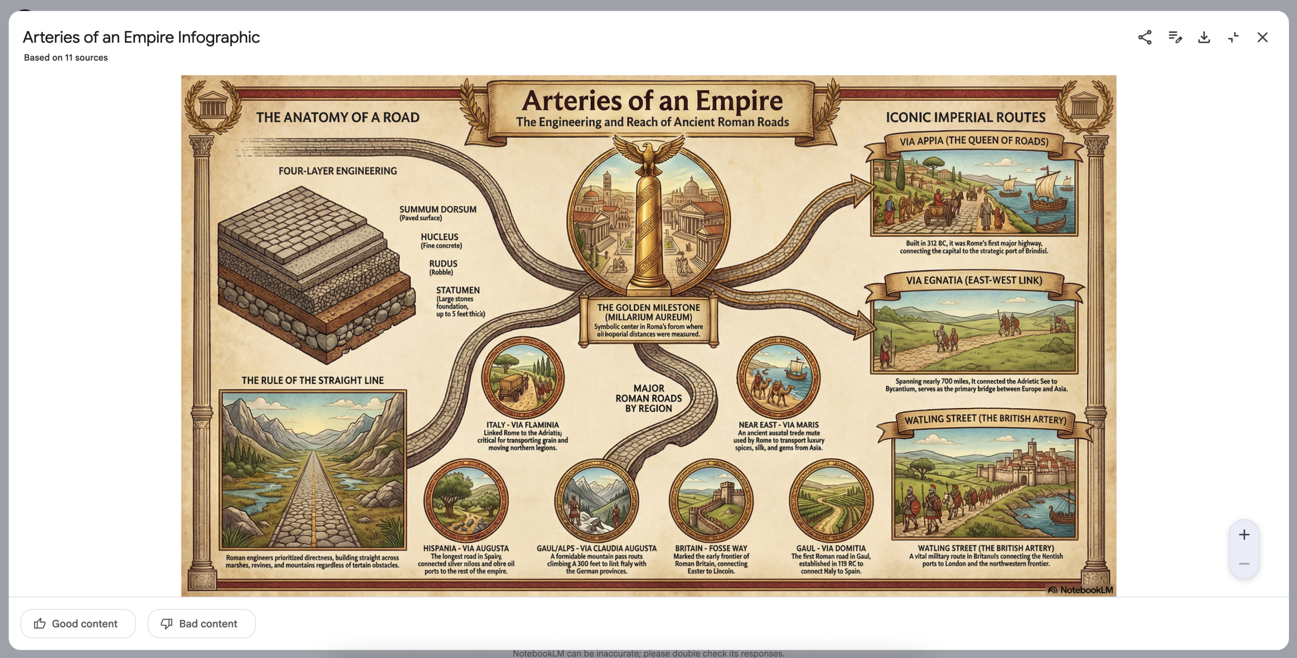 NotebookLM’s greatest strength is its Studio outputs. The audio overview tool is particularly impressive, producing podcast style content that is engaging, coherent, and genuinely useful for studying or review. The infographic and slide deck generators stand out as some of the strongest currently available when prompted carefully, producing visually clean and conceptually accurate materials.