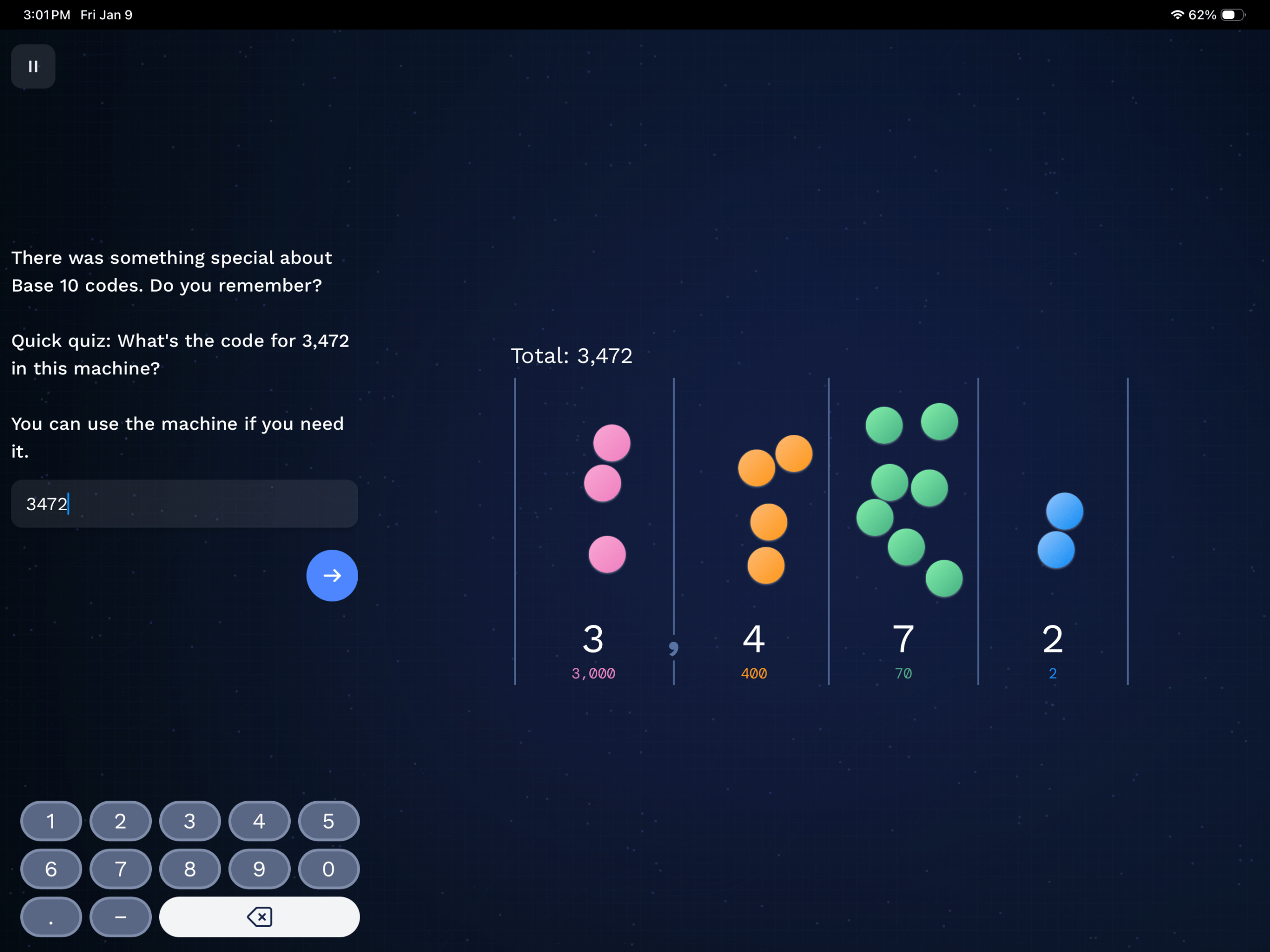 Students interact with Synthesis Tutor through a voice guided interface that feels supportive and conversational. Lessons incorporate custom visuals and interactive elements that vary by topic, helping students engage with math in ways that feel concrete and intuitive. Younger learners receive more audio scaffolding, while older students are encouraged to move more independently through content.